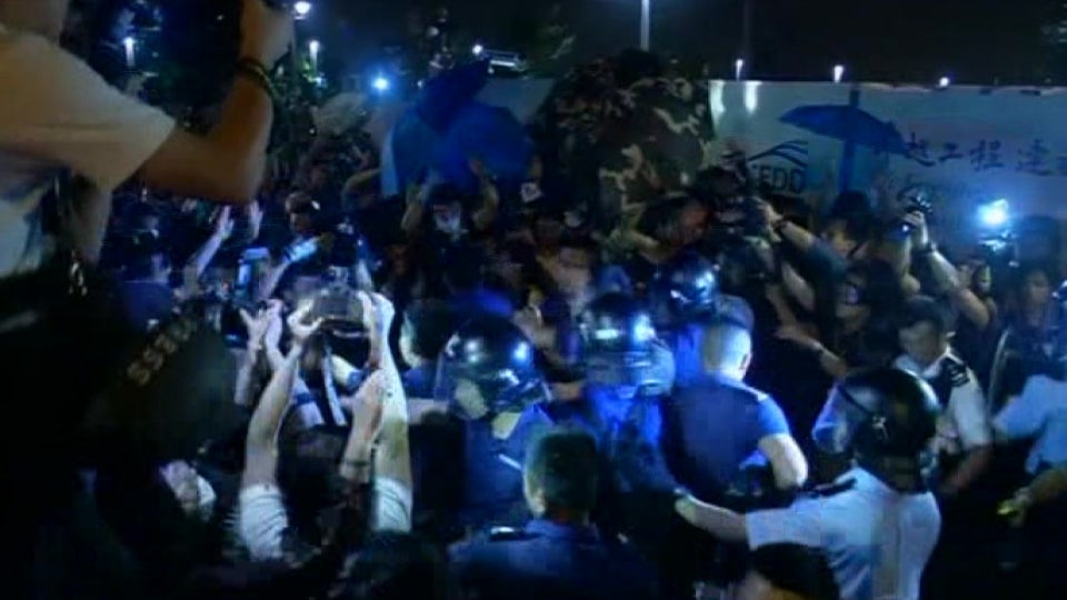 Es gibt erneute Auseinandersetzungen zwischen Polizei und Demonstranten.