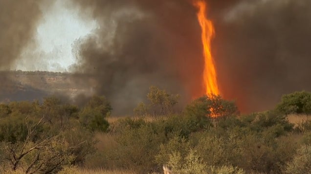 Feuertornado ist ein wissenschaftlich nicht korrekter, aber im Sprachgebrauch verankerter Begriff für einen vertikalen, mit Flammen erfüllten Luftwirbel bei größeren Bränden. Das Video zeigt solch einen Luftwirbel im australischen Outback.