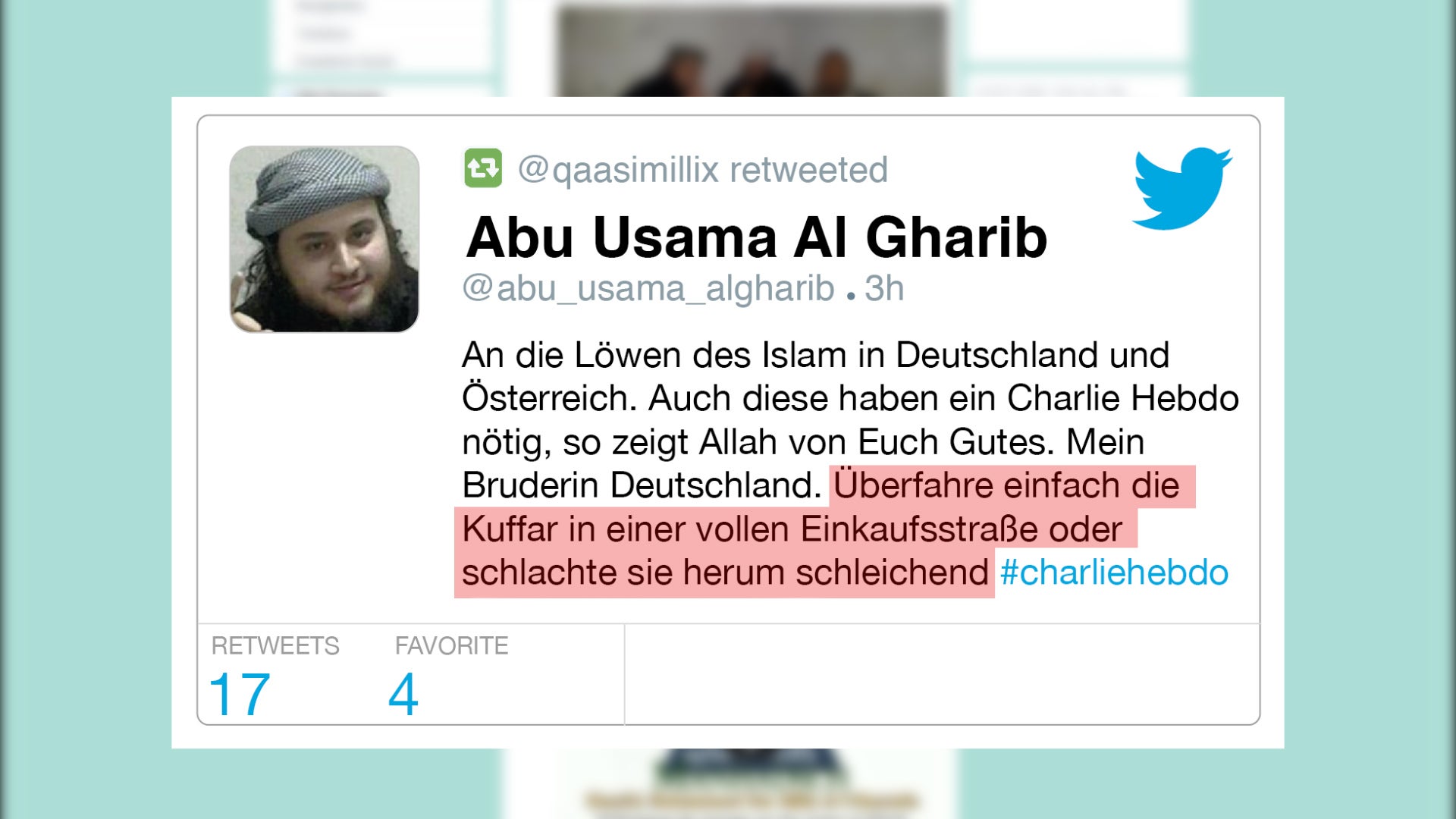 oe24.at oe24 Video NEWS NEWS Austro-Islamist droht mit Massaker 15.01.15, 14:31 Ein ausgewanderter österreichischer Terrorist droht Österreich. Fehler im Artikel gefunden? Jetzt melden.