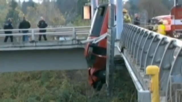 Es war die wohl längste Stunde im Leben von Matthew Alan Hamilton: Der US-Amerikaner saß am Samstag fast 60 Minuten in seinem Auto fest, während es vom Rand einer Brücke in Oregon baumelte. Lediglich die Hinterräder bewahrten Truck und Fahrer vor dem endgültigen Absturz.