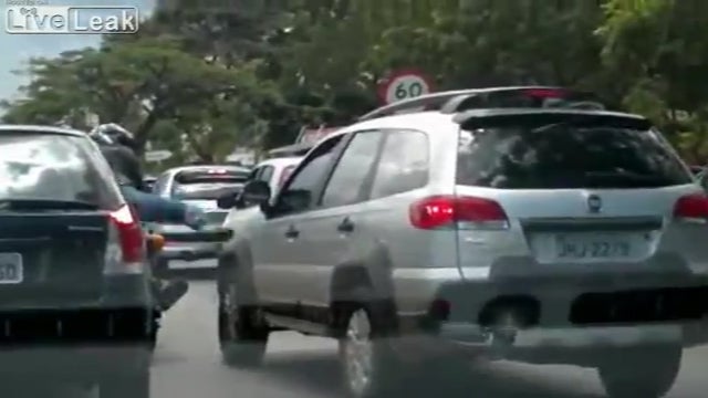 Eine irre Szene spielt sich am vergangenen Samstag in der brasilianischen Hauptstadt Brasilia ab. Eine Frau ärgert sich so sehr über einen Motorradfahrer, dass sie ihn kurzerhand umfährt.