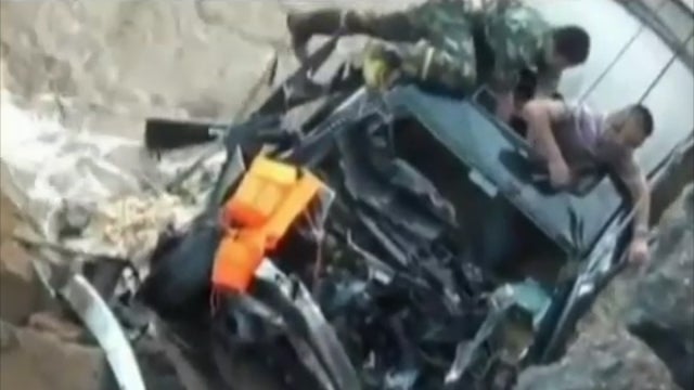 Nachdem ein Auto einer Hochzeitsgesellschaft über eine Brücke gefahren war, brach diese plötzlich in sich zusammen. Mit der Brücke stürzten auch zwei Fahrzeuge, die zur Hochzeitsgesellschaft gehörten, in den Fluss darunter