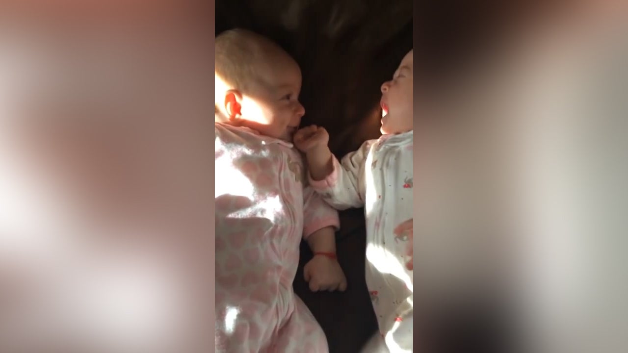 Über das Weinen ihrer Zwillingsschwester kann der zweite Zwilling nur lachen.