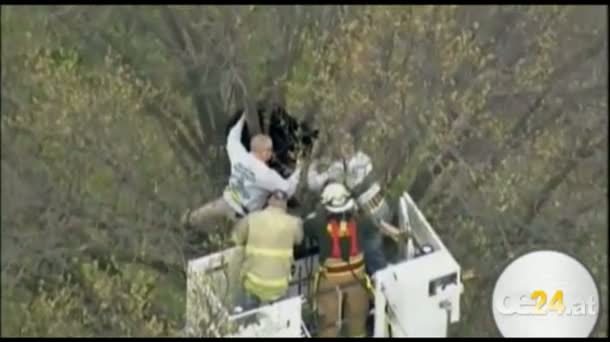 Im amerikanischen Hightstown in New Jersey ist ein Schwarzbär in einer Baumkrone stecken geblieben und musste von Rettungskräften befreit werden.