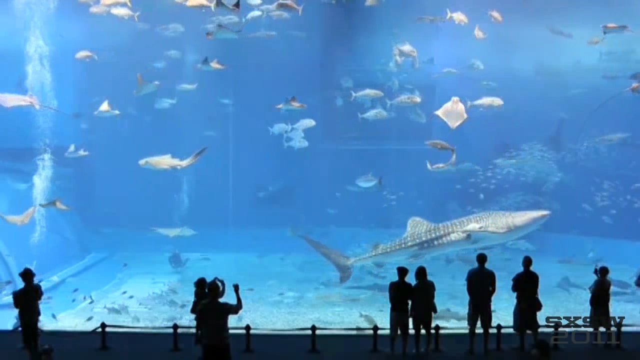 Wunderschönes Video- das Okinawa-Churaumi-Aquarium ist das zweitgrößte Aquarium der Welt. Im Hauptbecken befinden sich 7,5 Millionen Liter Wasser. Es ist eine der wenigen Aquarien der Welt, in dem Walhaie zu bewundern sind.