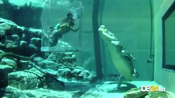 Das Krokodil mit dem Namen "Chopper" wartet schon. Der 800 Kilo Koloss wurde in den Sümpfen nahe Darwin gefangen, weil er immer wieder Bauern angegriffen haben soll.