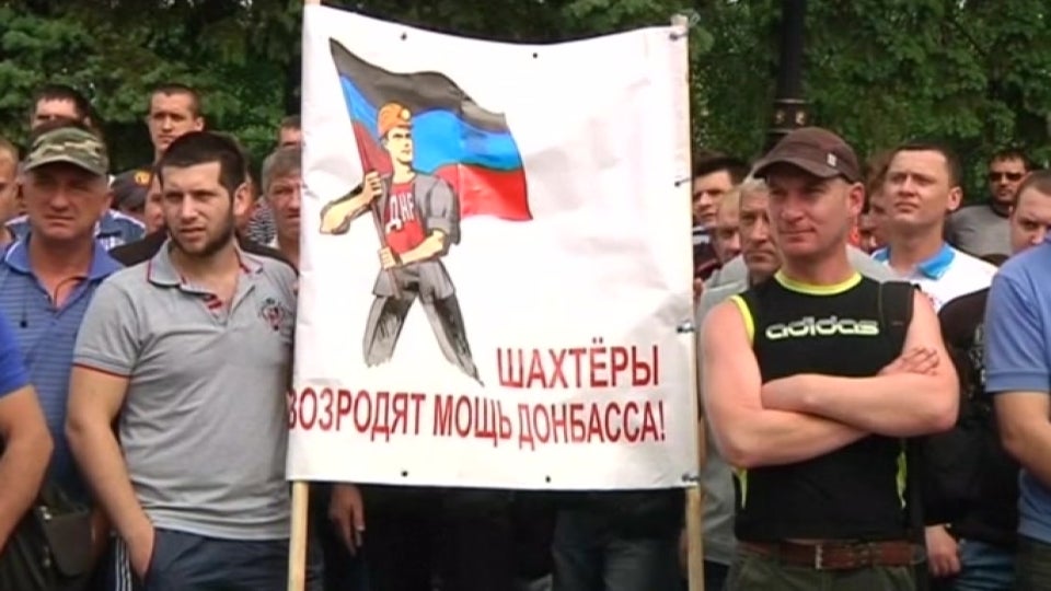In Donezk haben Hunderte Bergleute für die Separatisten in der Ostukraine demonstriert.