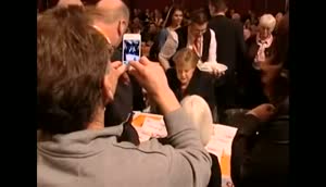 Was macht die Kanzlerin der Bundesrepublik Deutschland, wenn ihr fünf Gläser Bier in den Nacken geschüttet werden? Sie macht ihren Job.