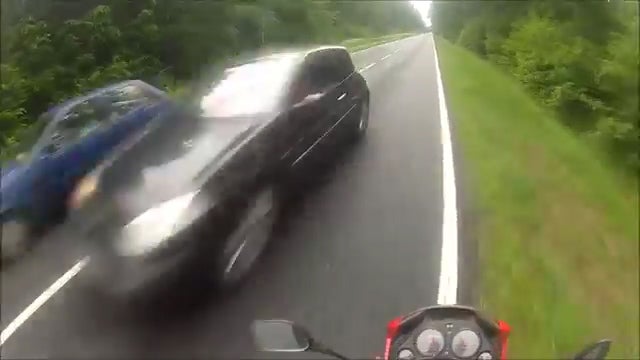 Um Haaresbreite entkommt dieser Biker einem schrecklichen Crash. Mit seiner Helmkamera filmt er wie, bei einem gefährlichen Überholmanöver, der Gegenverkehr auf ihn zurast.