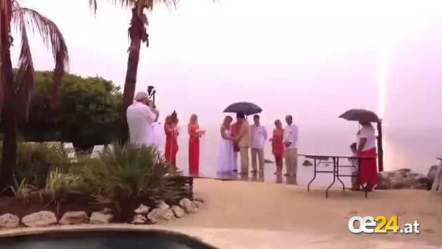 Dieses Paar ist noch nicht mal verheiratet und schon kracht, beziehungsweise donnert es zwischen ihnen ordentlich. Zum Glück sind sie bloß mit einem Schrecken davon gekommen.