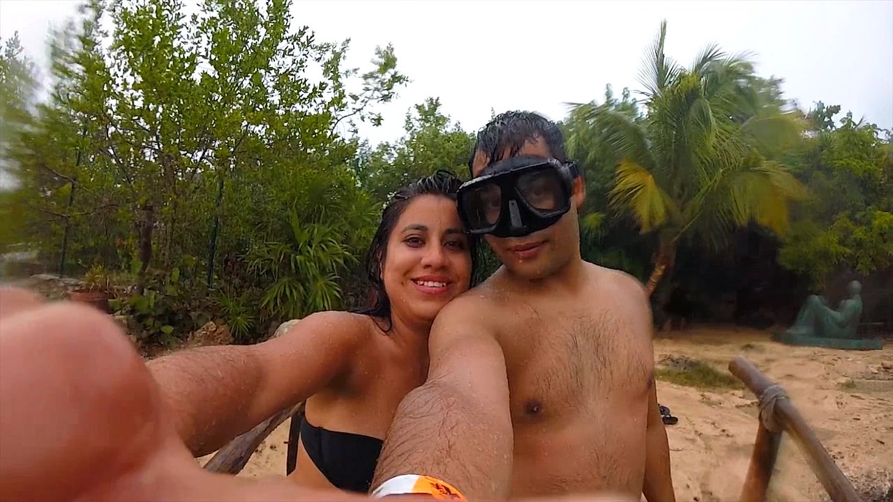 Die beiden wollen sich selbst knipsen, dann schlägt der Blitz ein.