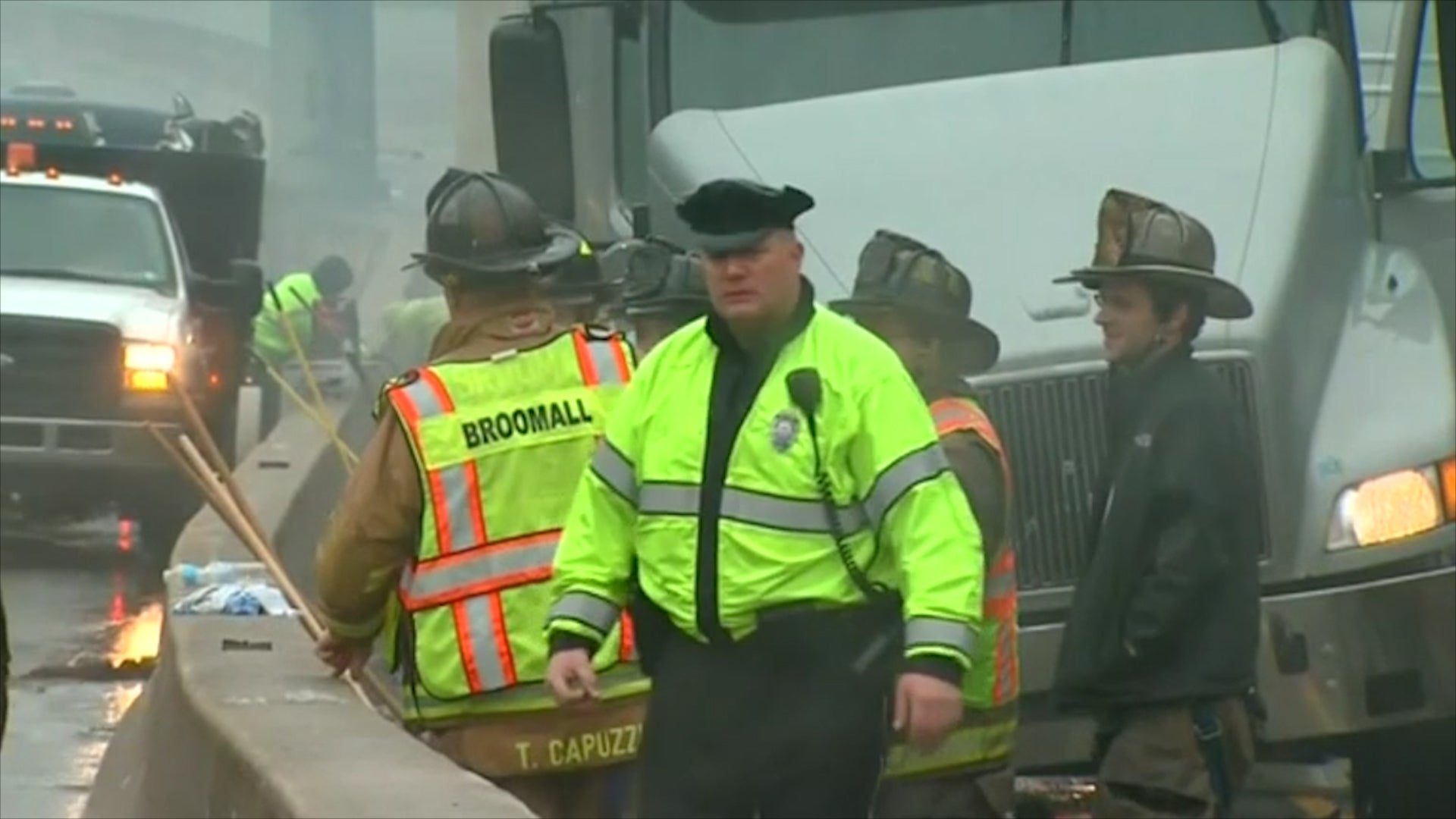 Das Wetter im Nordosten der USA bringt sogar Streufahrzeuge ins Rutschen.