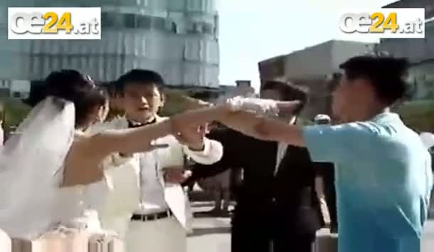 Als der homosexuelle Freund ihres Gatten auf der Hochzeit auftritt, kann die Braut nicht mehr an sich halten.