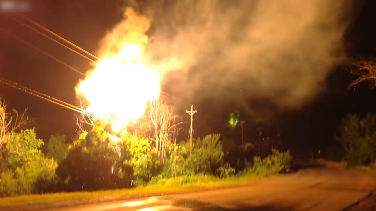 Ein brennender Baum unter einer Stromleitung bringt diese zum Explodieren.