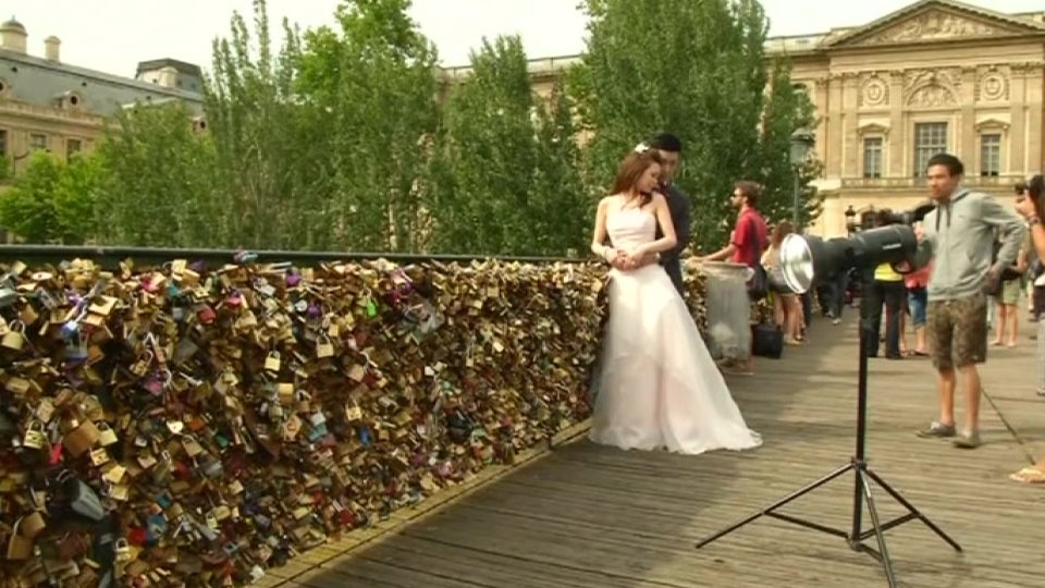 In der Pont des Arts über die Seine klafft seit Sonntag ein Loch.