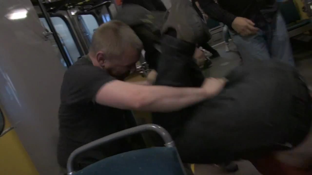 Ein Zusammenschnitt von gewaltsamen Übergriffen in öffentlichen Verkehrsmitteln.