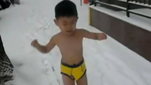 Weil seine chinesischen Eltern ihn "abhärten" wollen, hat ein Vierjähriger in New York fast nackt durch den Schnee rennen müssen.
