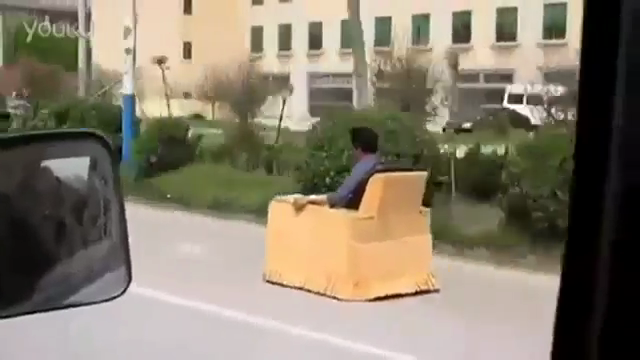 Der junge Chinese hat die ideale Lösung für die Antriebsschwäche aller Couchpotatoes gefunden.