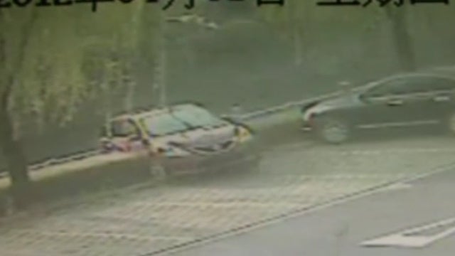 Eine chinesische Autolenkerin schoss bei dem Versuch einzuparken wohl eindeutig über das Ziel hinaus.