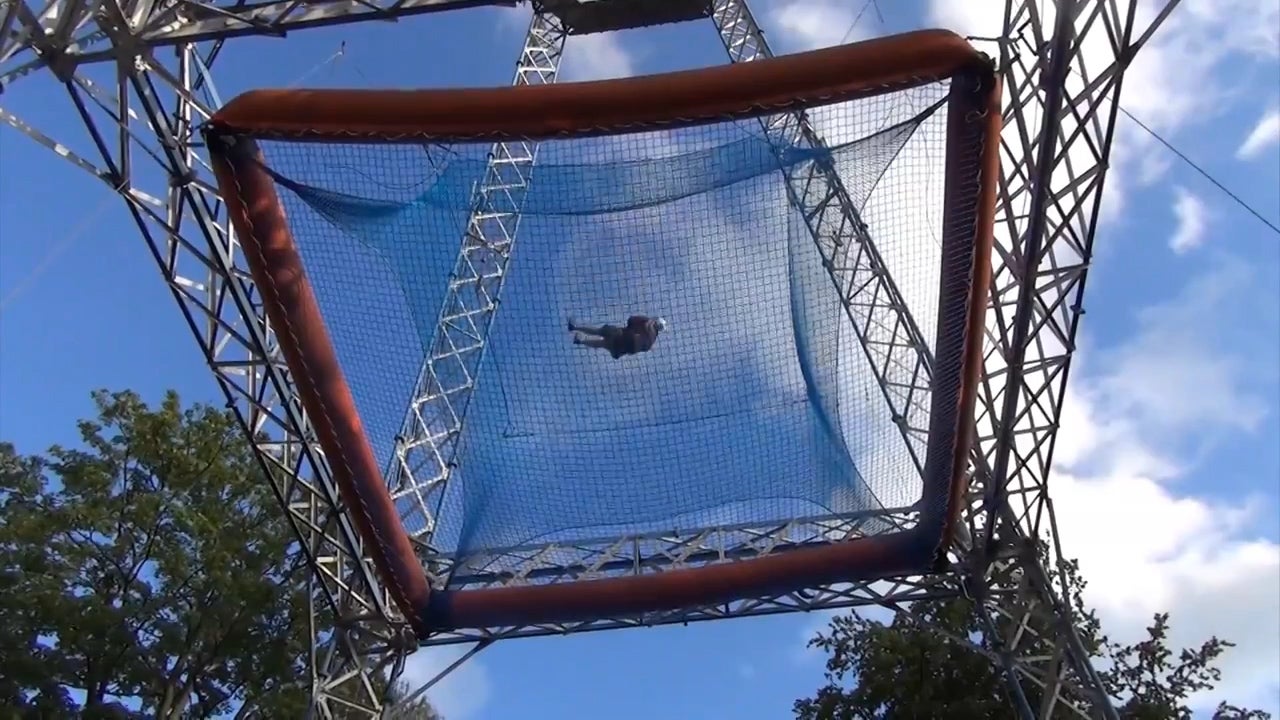 Aus einer Höhe von 30 Metern fällt man frei in ein Netz- der Sky-Tower in Dänemark.