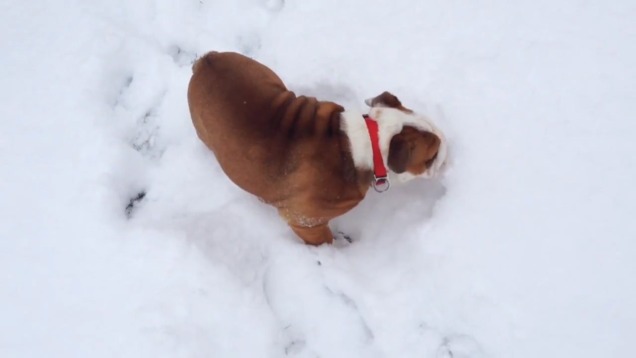 Ganz sicher ist sich dieser Hund nicht, ob er den Schnee mag, oder nicht.