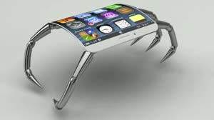 Bei dem Entwurf handelt es sich um ein iPhone mit biegsamen Touch-Display. Hinzu kommt ein Aufsatz, der an Spinnenbeine oder die Hand von Terminator erinnert. Mit diesem krallt sich das Smartphone förmlich in die Hand seines Besitzers.
