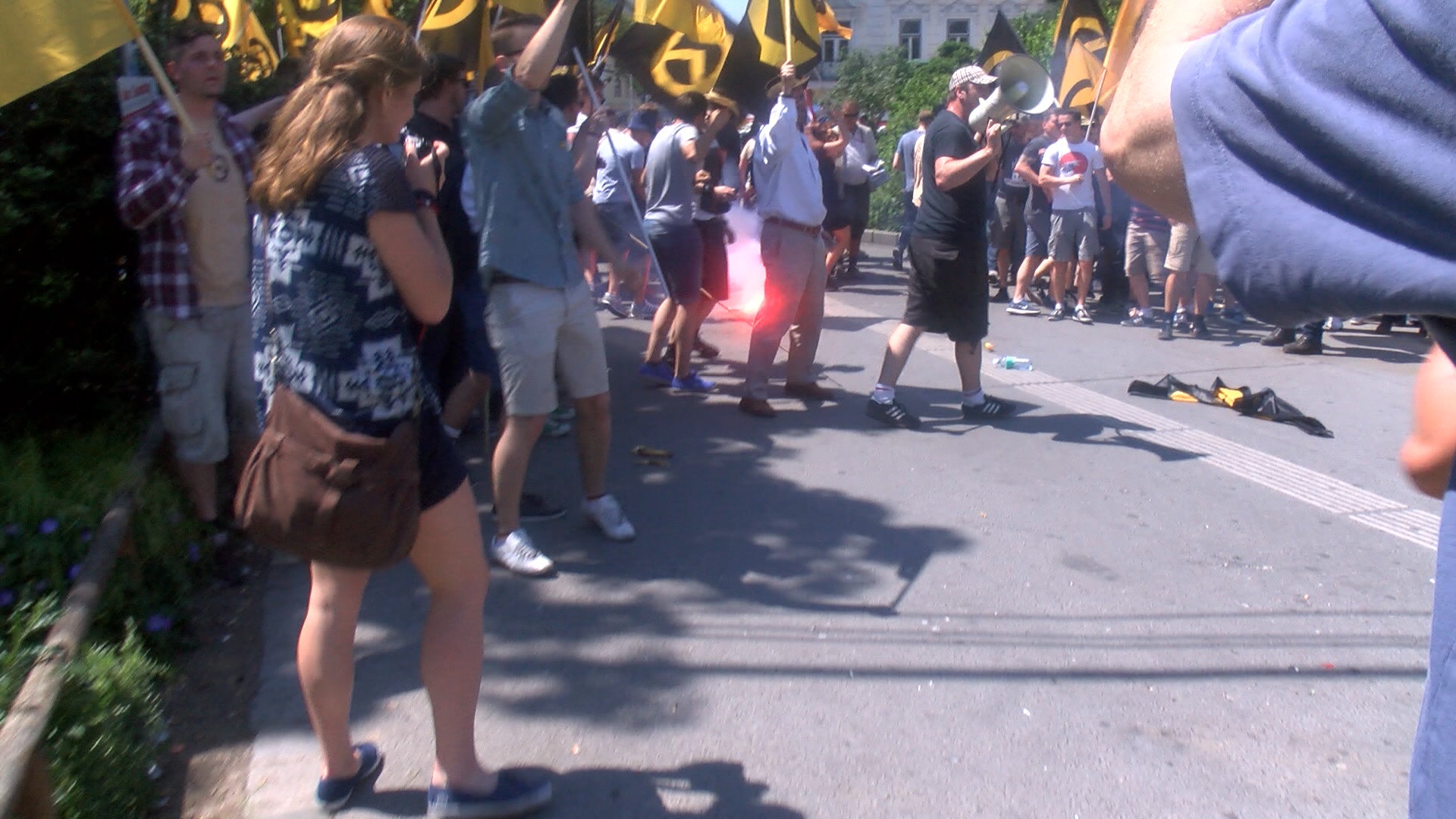 Die rechten Identitären demonstrieren in Wien gegen "Multikulti" - auf der anderen Seite: Linke mit einer Gegendemo.