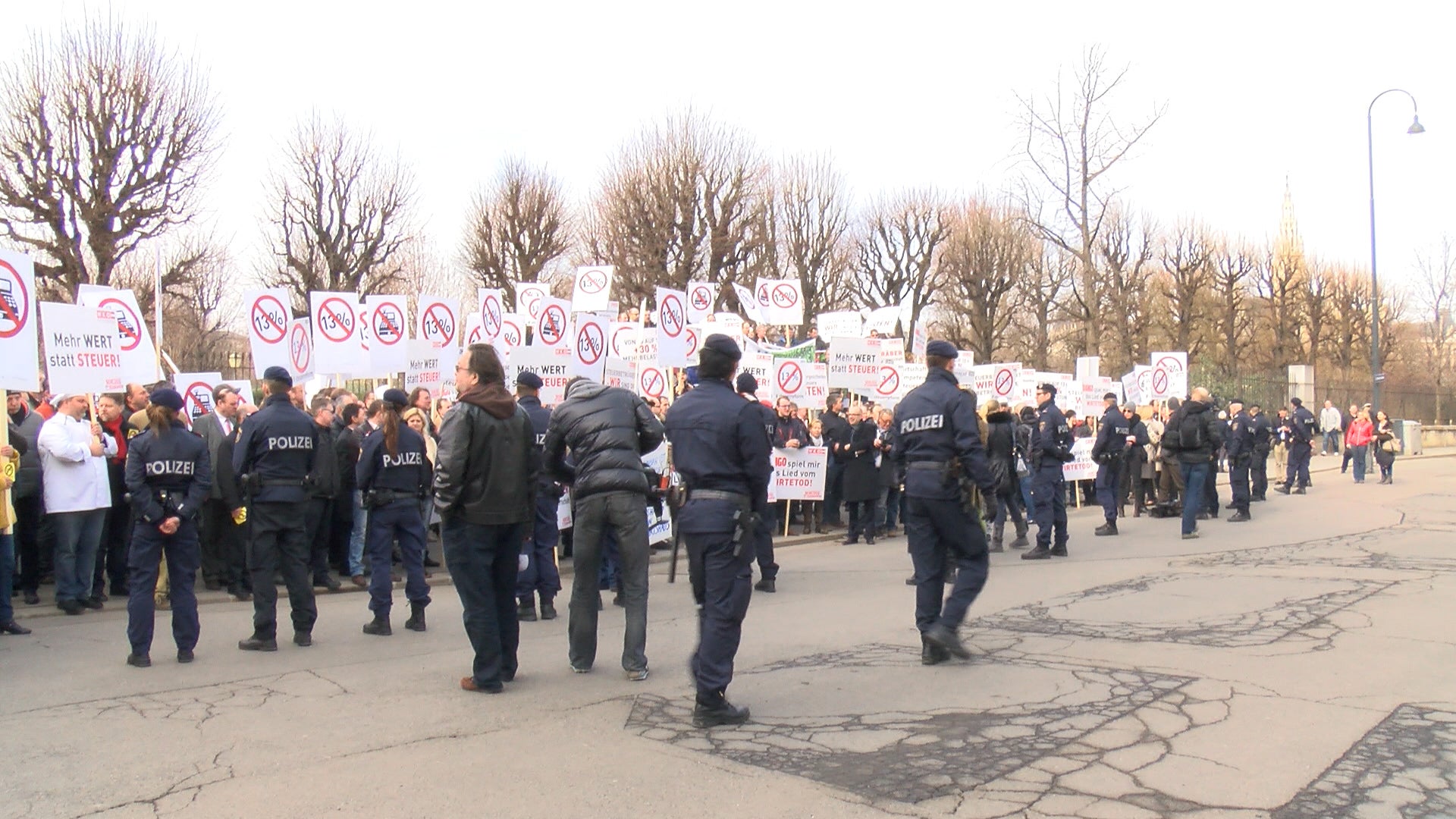 Vertreter des Tourimus, Wirte und Hoteliers versammeln sich heute vor dem Bundeskanzleramt um gegen die Steuerreform zu protestieren.
