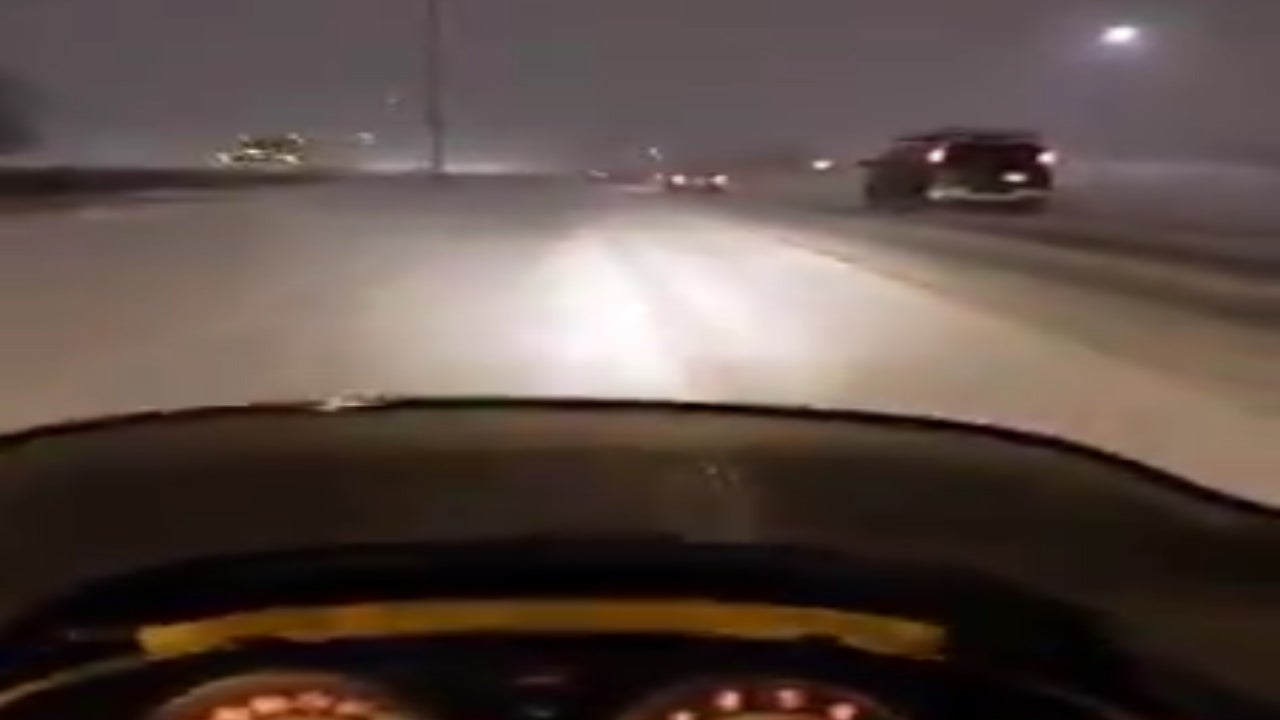 Dieser Herr nützt das extreme Wetter in den USA um sein Schneemobil zu testen - und das auf dem Highway! Dabei zieht er ein paar Autos einfach davon.