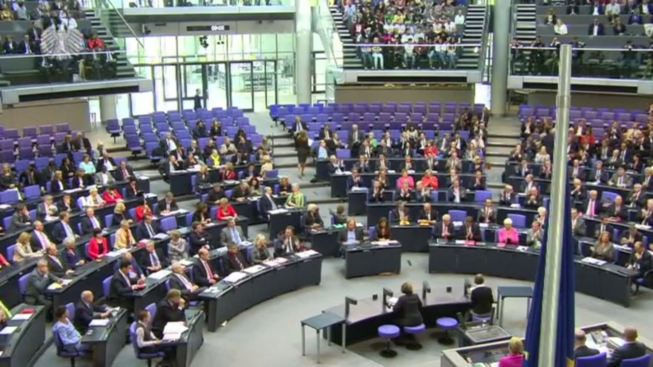 "Solidarität mit Griechenland" Plakate während des deutschen Bundestags.