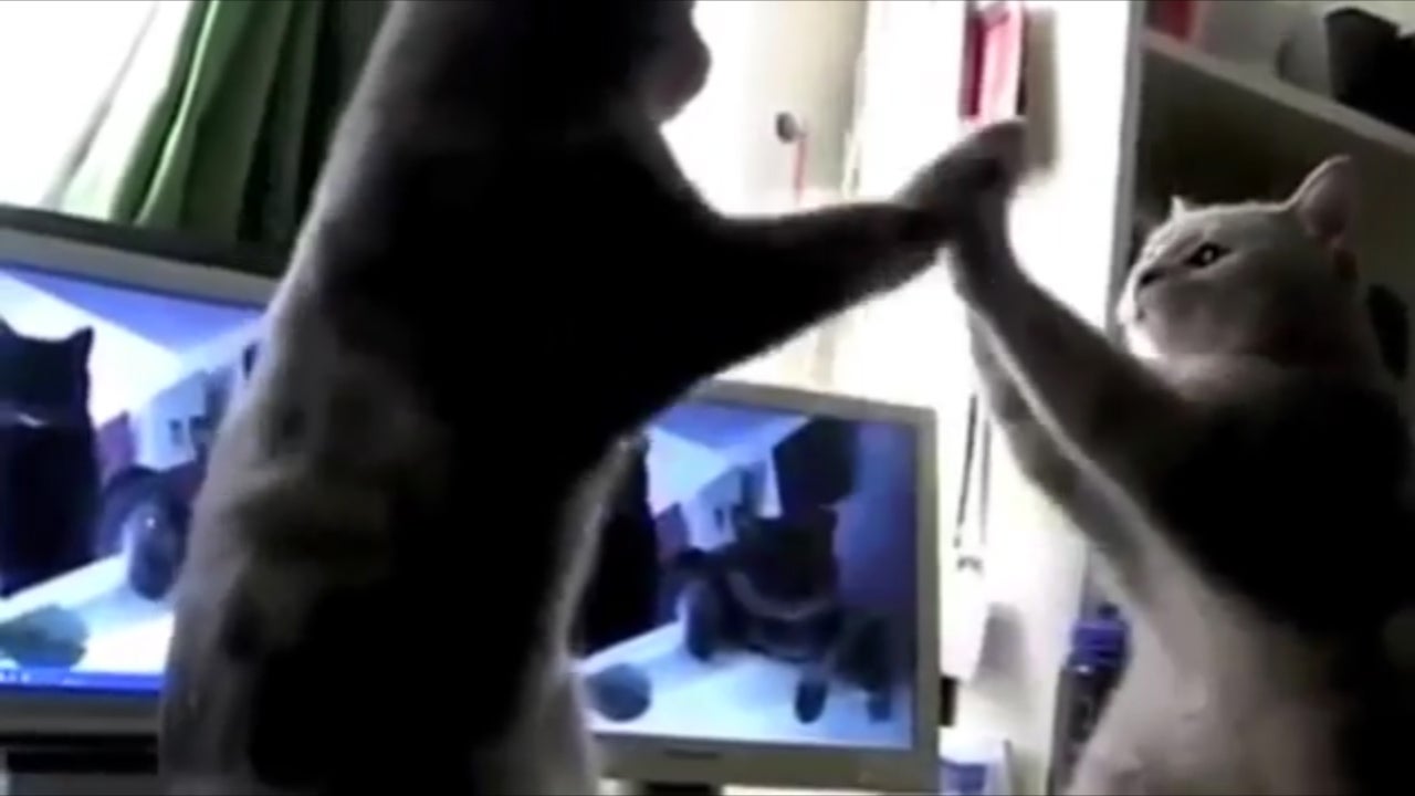 Achtung, albern! Diese Katzen machen auf einem Schreibtisch ein kleines Pfoten-Kämpfchen und singen dabei den Kinderklassiker 'Backe, backe, Kuchen'.