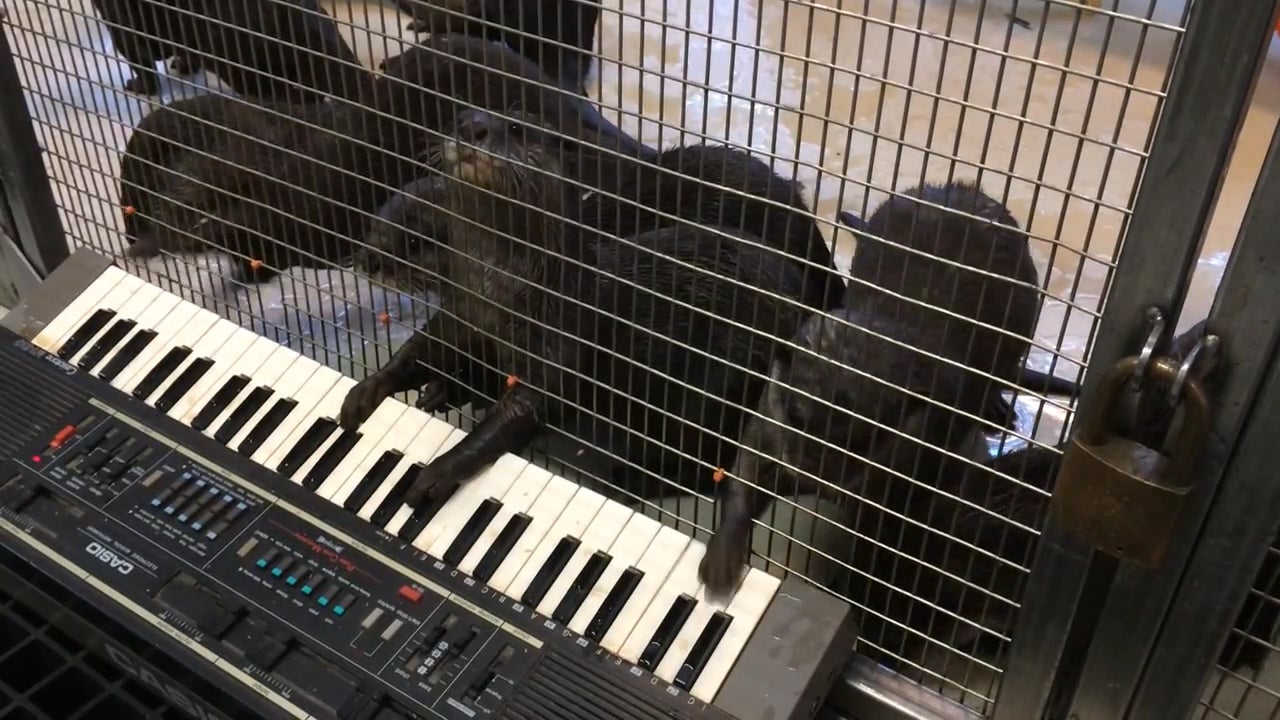 In diesem Video spielen asiatische Otter im Smithsonian's National Zoo auf einem Keyboard.