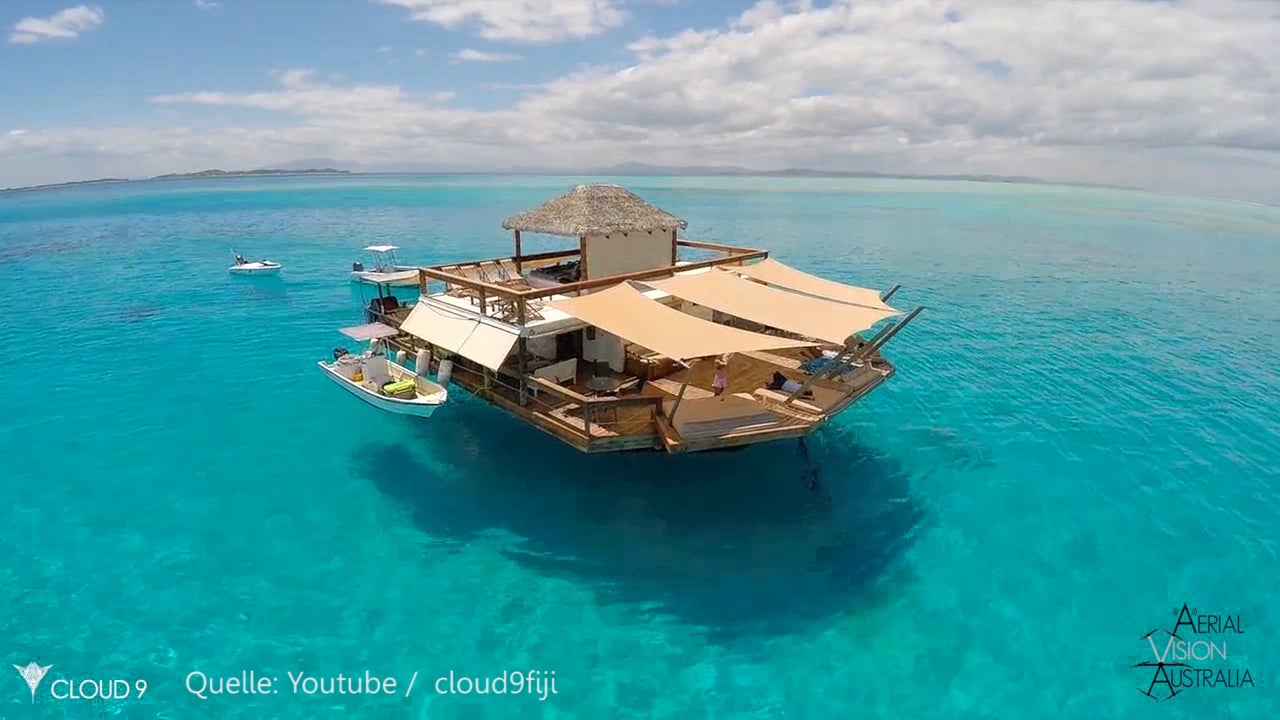 Wer im Paradies Pizza essen will, muss einfach dieses Lokal im Meer der Fiji Inseln besuchen.