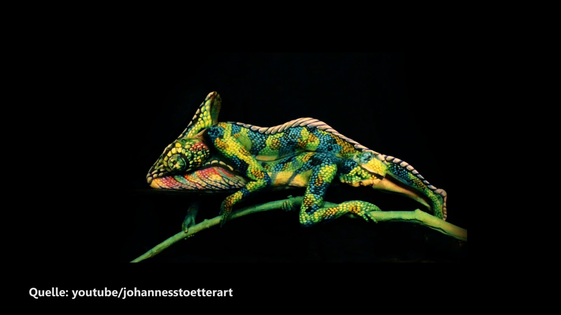 Ein Meisterstück von Johannes Stötter: Ein Chameleon bestehend aus zwei Menschen.