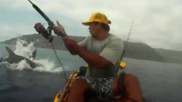Dieser Fischer staunt nicht schlecht als ihm ein Hai seinen Fang wegschnappt.
