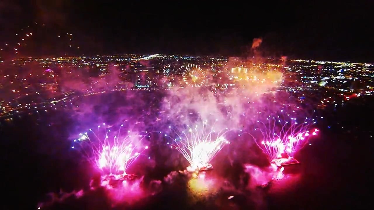 Eine Drohne macht spektakuläre Bilder mitten in einem Feuerwerk.