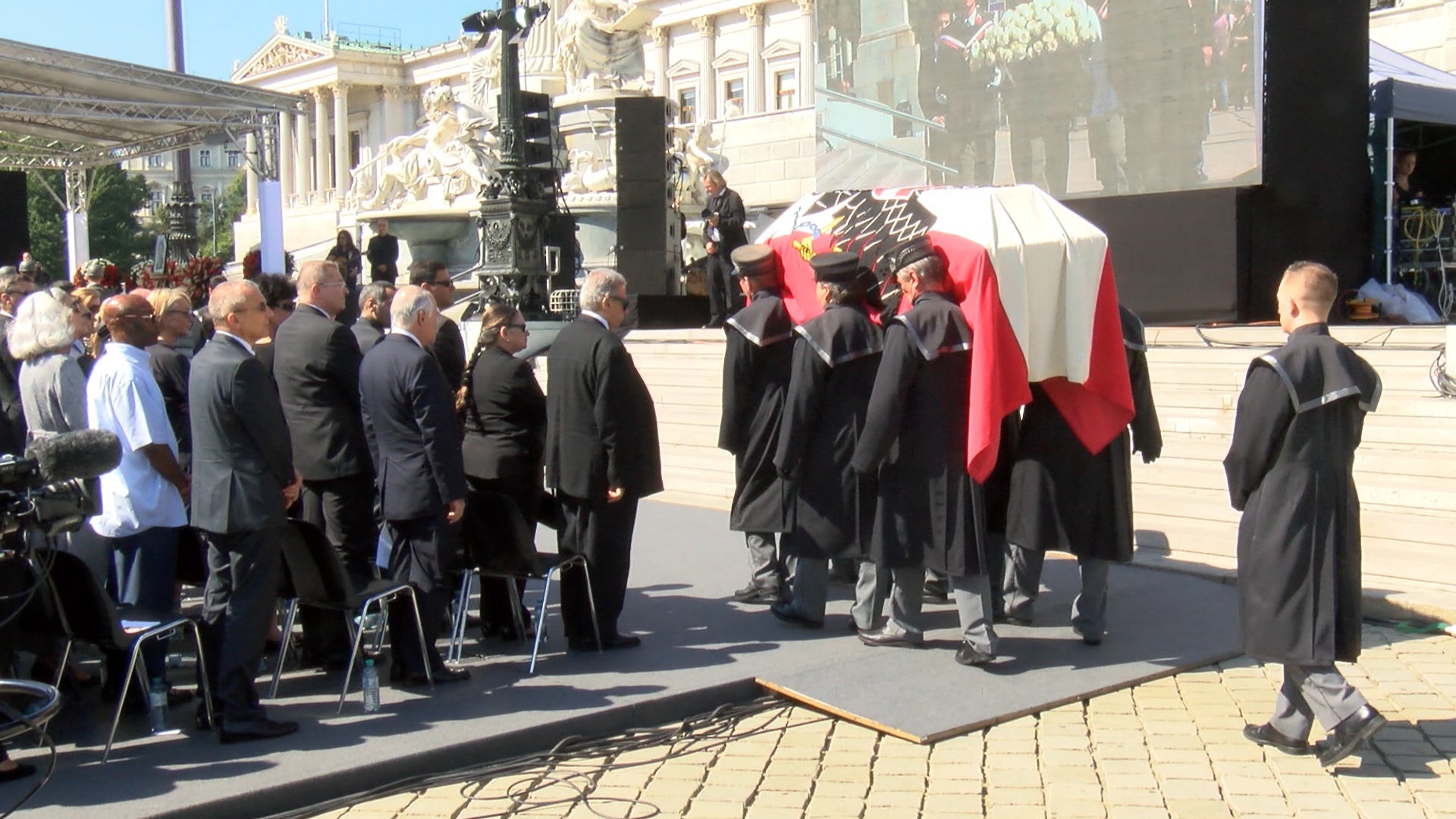 Vor dem Parlament findet heute das Staatsbegräbnis von Prammer statt.