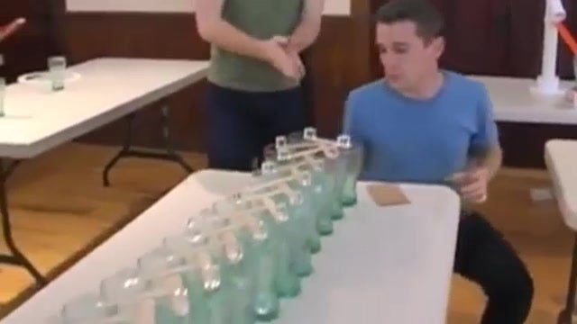 Diese beiden Herren haben gleich einen ganzen Parcours für ihre Tricks mit Eiswürfeln aufgebaut.