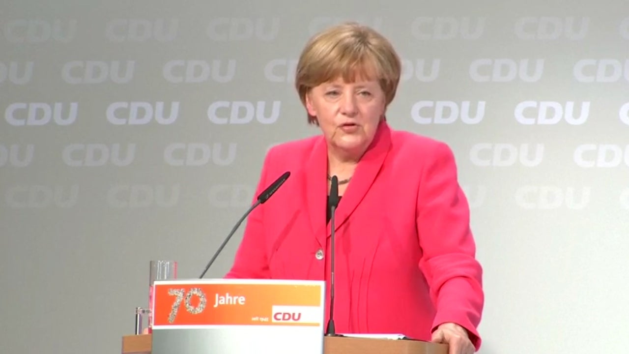 Beim Festakt zum 70. Gründungstag redete die deutsche Bundeskanzlerin Merkel über Europa.