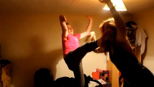Das war wohl so nicht geplant. Dieser junge Mann hat sich vorgenommen die Glühbirne seiner Deckenlampe mit einer Art Karate-Tritt auszumachen. Statt der Lampe trifft er jedoch das Gesicht seiner Freundin, die ihm Plötzlich in seinen Bewegungsradius läuft.
