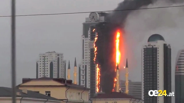 Ein Feuer-Drama in Grosny hält die Menschen der tschetschenischen Republik stundenlang in Atem. Eine gewaltige Feuersäule hat bereits die Hälfte des "Olymp" genannten Wolkenkratzers zerstört. Luxus-Apartments und ein 5-Sterne-Hotel sind in dem Komplex untergebracht.