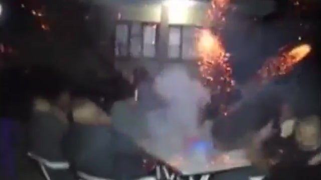 In der Türkei explodiert inmitten einer am Tisch sitzenden Runde älterer Herren plötzlich ein Feuerwerkskörper.