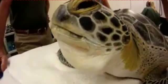 Auf den Florida Keys hat ein Zahnarzt das Leben einer seltenen Grünen Meeresschildkröte gerettet. Die Turtle-Clinic bat den Zahnmediziner um Mithilfe bei einer schwierigen 'Panzer-OP'. Der Arzt konnte einen Riss im Panzer der Schildkröte mit Zahnkleber und Klammern wieder kitten.