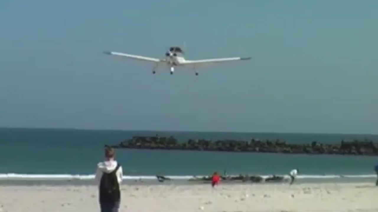 Dieser Badegast hat Glück. Ein Kleinflugzeug verfehlt ihn bei der Landung nur um ein paar Zentimeter.