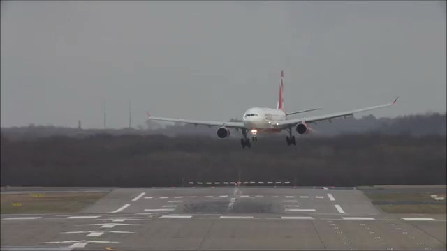 Was hier so aussieht wie der Beginn einer Katastrophe ist jedoch eine gekonnte Landung des Piloten bei hohen Windgeschwindigkeiten. Ein beruhigender Anblick sieht jedoch trotzdem anders aus.