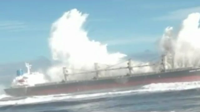 Was riesige Wellen anrichten können sieht man auf diesem Video sehr deutlich. Vor der chilenischen Küste bei Llolleo wurde dieses Frachtschiff durch den enormen Seegang vom Anker losgerissen. Laut Angaben ist die Ankerkette des Frachters gebrochen.