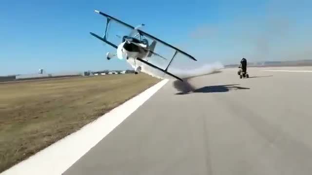 Eine unbekannte Frau wird beinahe von einem landenden Flugzeug geköpft, kommt aber mit dem Schrecken davon. Das Video zeigt, wie das kleine Flugzeug auf einer Landebahn immer näher auf die schreiende Frau zukommt, sie aber dann doch knapp verfehlt und wieder in den Himmel steigt. "Oh mein Gott...Heilige Sch....", hört man die Frau im Hintergrund sagen.