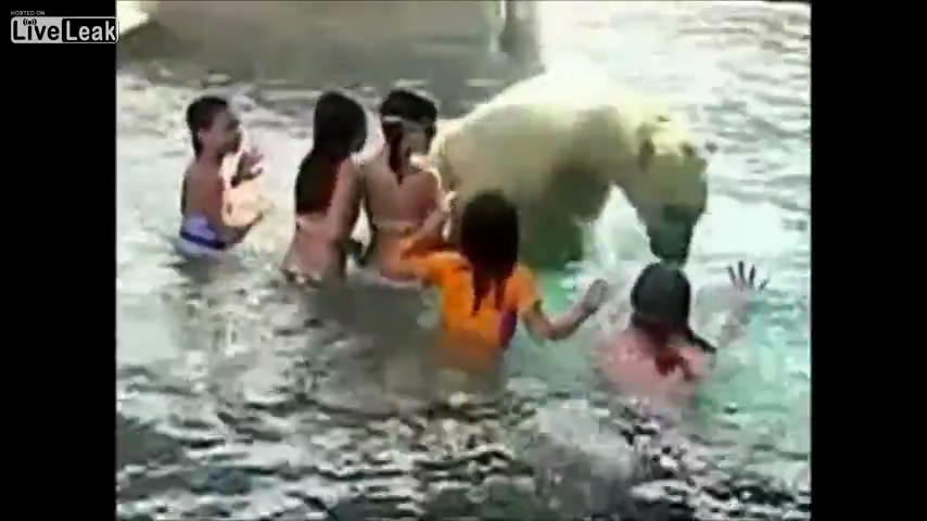 Bei einem Besuch eines kanadischen Tierparks plantscht diese Schulgruppe in einem Eisbärenkäfig. Aufgereiht vor dem wild umher springenden Bären geben die Kinder dann auch noch die kanadische Nationalhymne zum Besten.