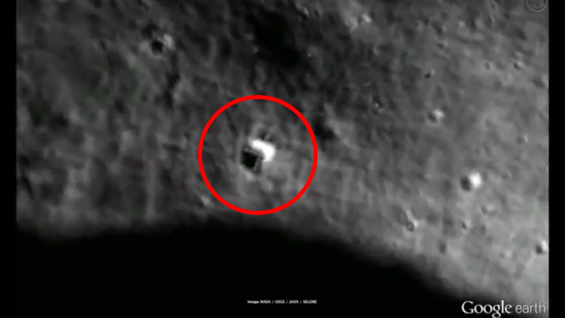 Aufregung im Internet: mit Hilfe von Google Earth wurde auf der Oberfläche des Mondes eine Art Gebäude entdeckt. Ein User namens WowForReel hat ein Video gepostet und fragt darin, was die sieben Lichtpunkte, die in einem 90 Grad-Winkel angeordnet zu sein scheinen, wohl markieren.