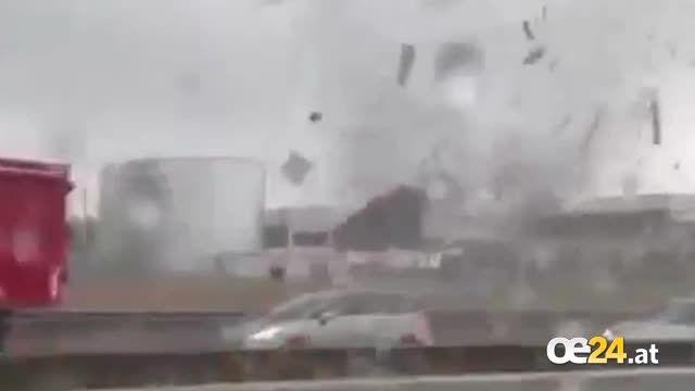 In diesem Amateuervideo ist zu sehen, wie ein Tornado in den Straßen der Vororte Mailands wütet. Der Wirbelsturm sorgte unter anderem für umgestürzte Lastkraftwägen und entwurzelte Bäume.